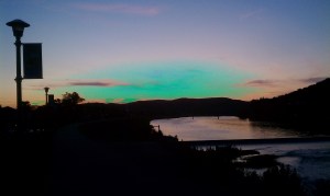 Lock Haven Dike, looking toward Jay Street Bridge at Dusk