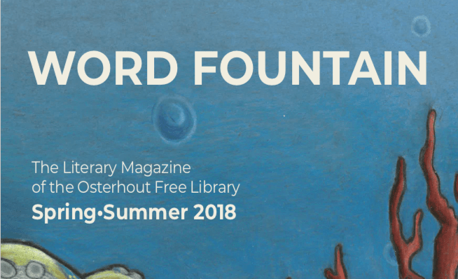 Word Fountain’s Spring/Summer release party and reading at the Osterhout Free Library, 71 South Franklin Street in Wilkes-Barre, PA. Though I won’t be reading my stuff, I will be reading a few pieces from the issue. Contributors reading from their work include Harold Jenkins, Jenica Lodde, Eric Chiles, and Laurel Radzieski.